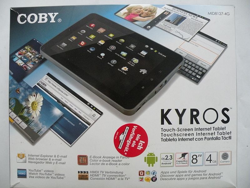- System operacyjny Android 2.3 (możliwa aktualizacja systemu do Android 4.1.1 poprzez uruchomienie bezpośrednio na tablecie strony: cobygermany.de/?p=android4-update )